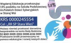 Wspieraj edukację przekazując 1,5% podatku na Szkołę Podstawową im. Polskich Dzieci Syberyjskich w Starej Wsi