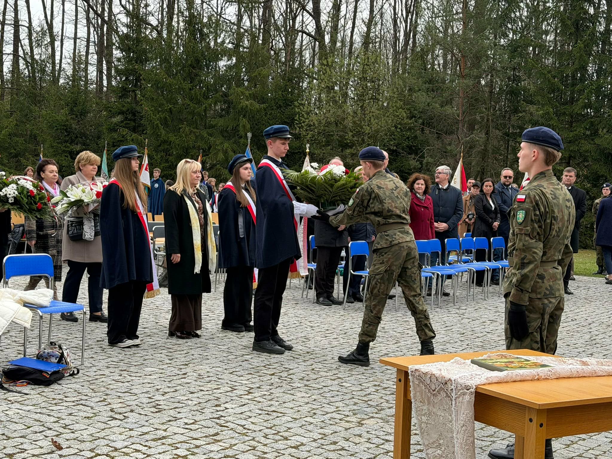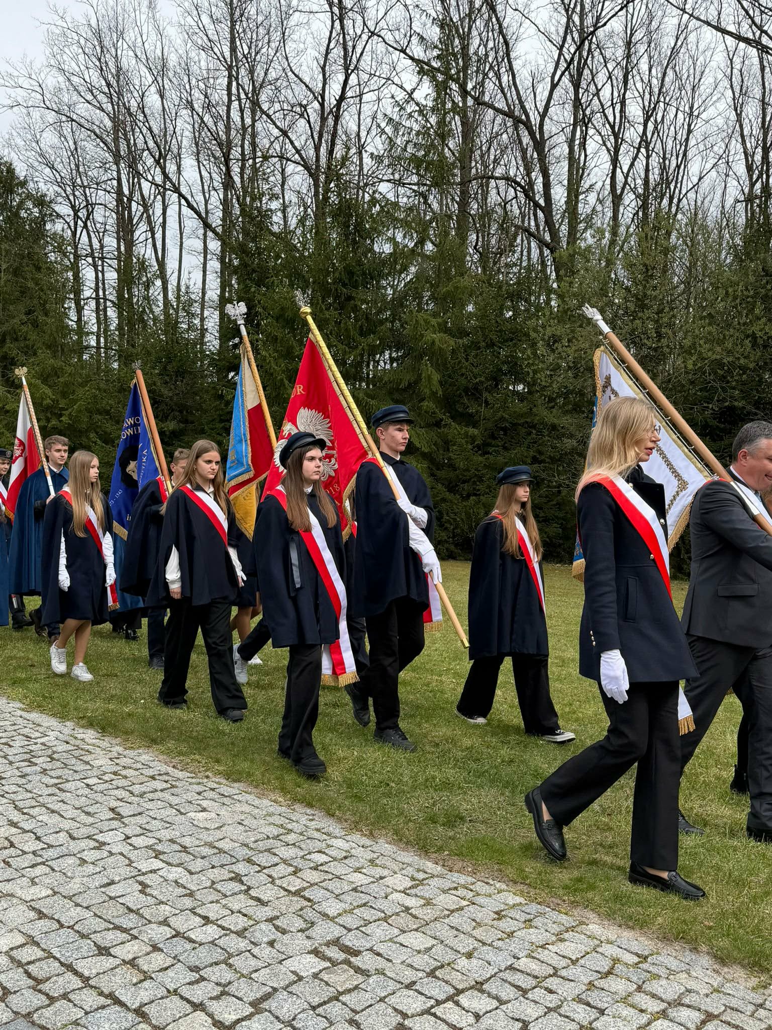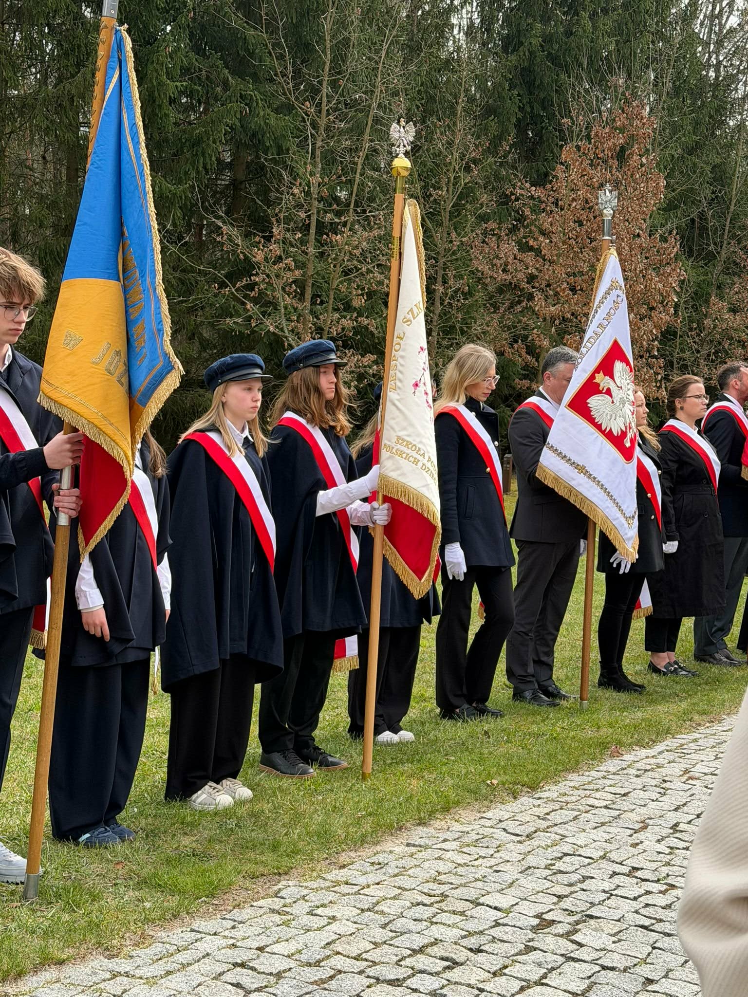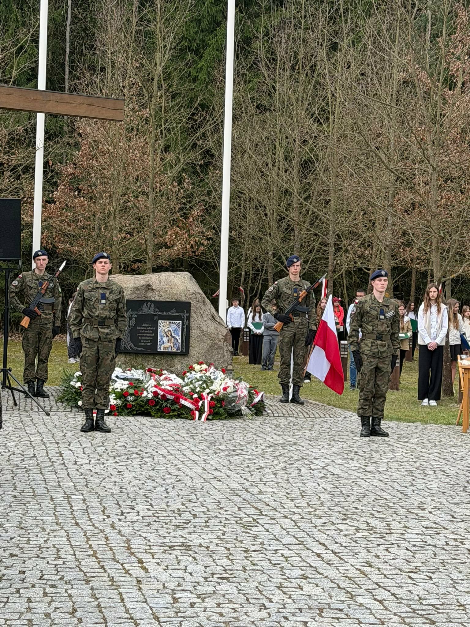 Po uroczystości szkolnej pani dyrektor Elżbieta Osuch, pani Kamila Kołtonowska, pani Katarzyna Lasecka i członkowie pocztu sztandarowego udali się pod pomnik „Golgota leśników polskich i ich rodzin pomordowanych na Wschodzie w latach 1939-1948”, aby złożyć wieniec i uczestniczyć we mszy świętej
