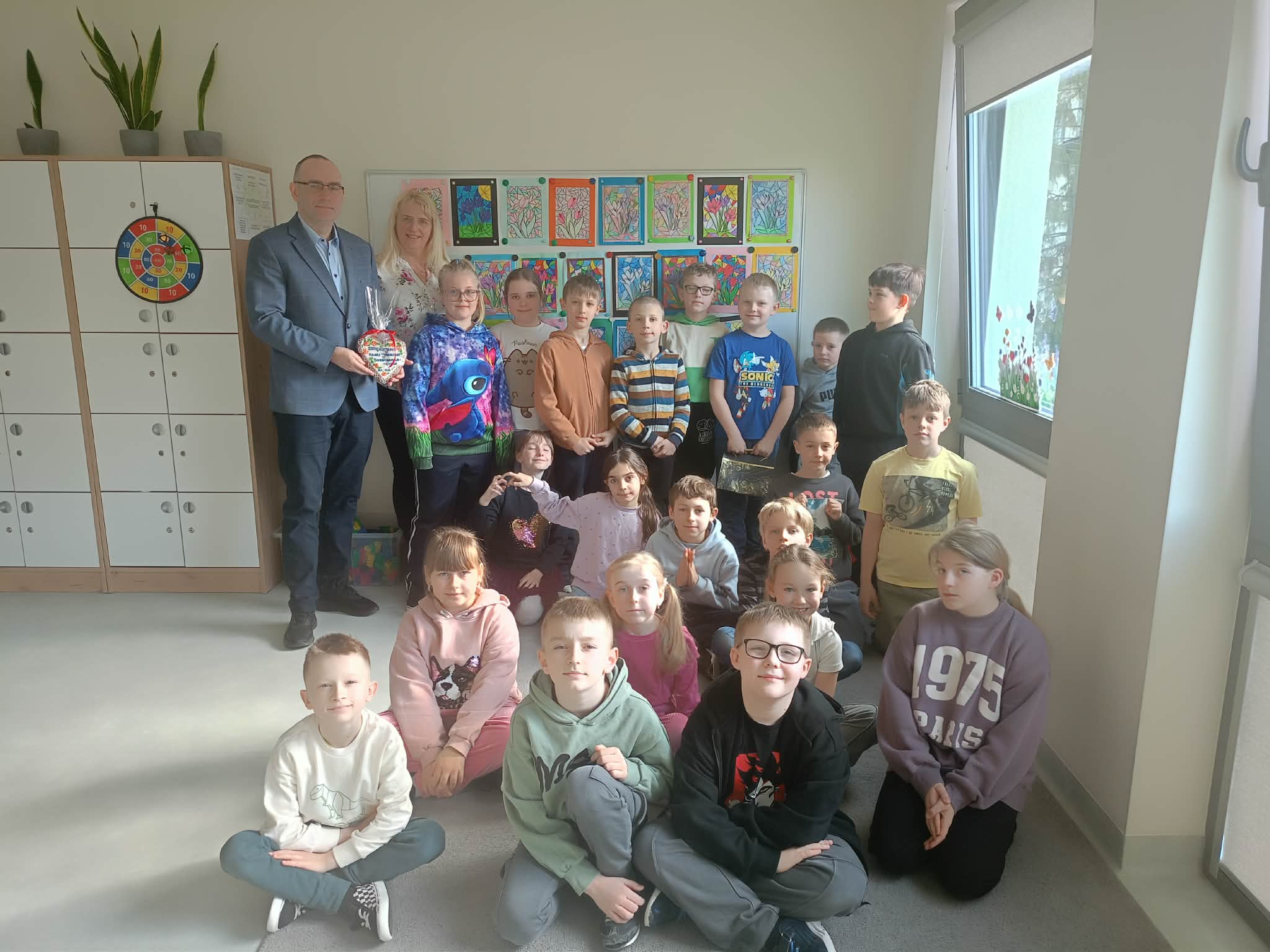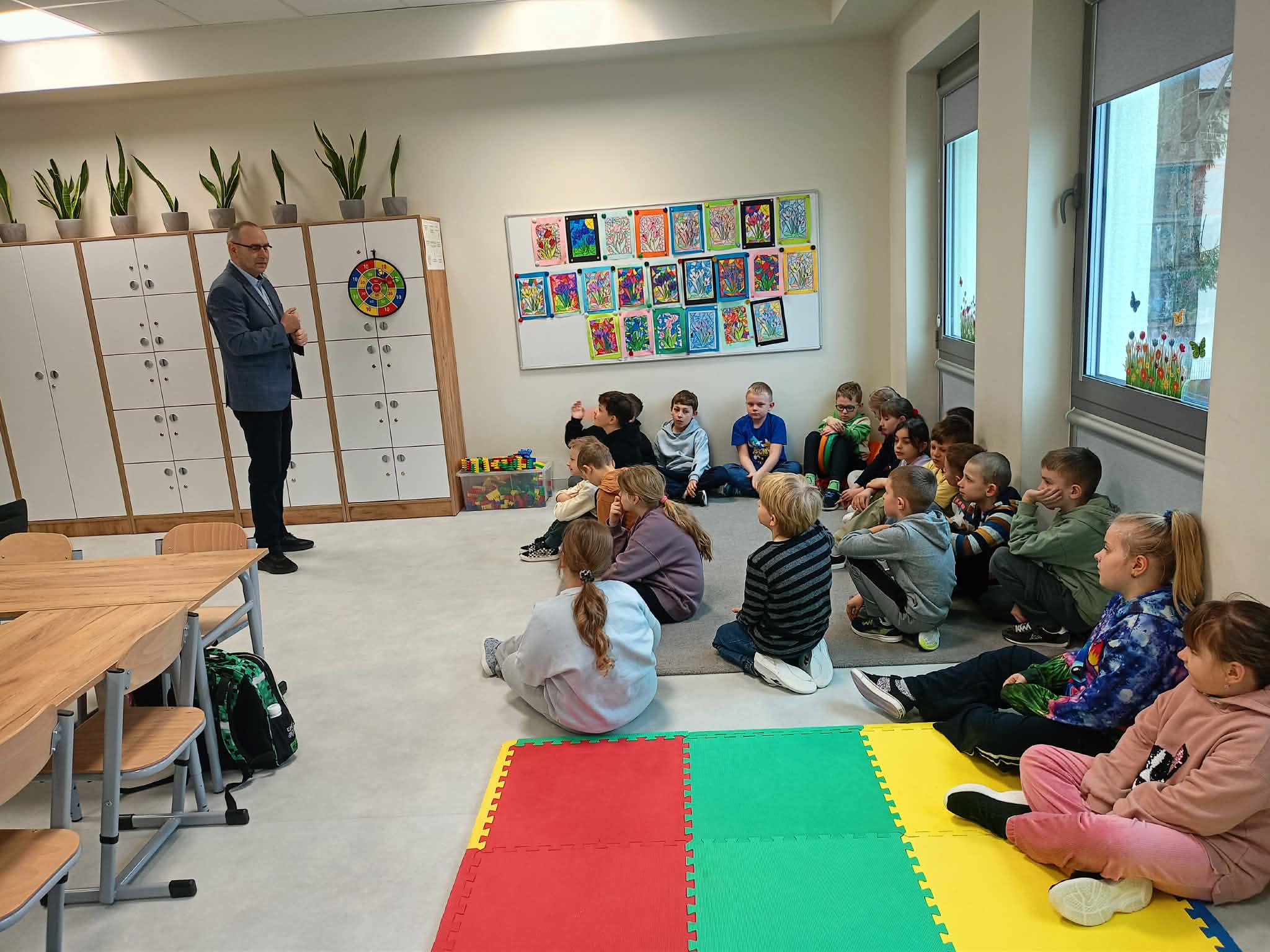 Pan Jacek Szostakiewicz chętnie odpowiadał na pytania uczniów. Dzieci aktywnie uczestniczyły w spotkaniu, dzieliły się swoimi spostrzeżeniami oraz tym, co najbardziej zapamiętały.