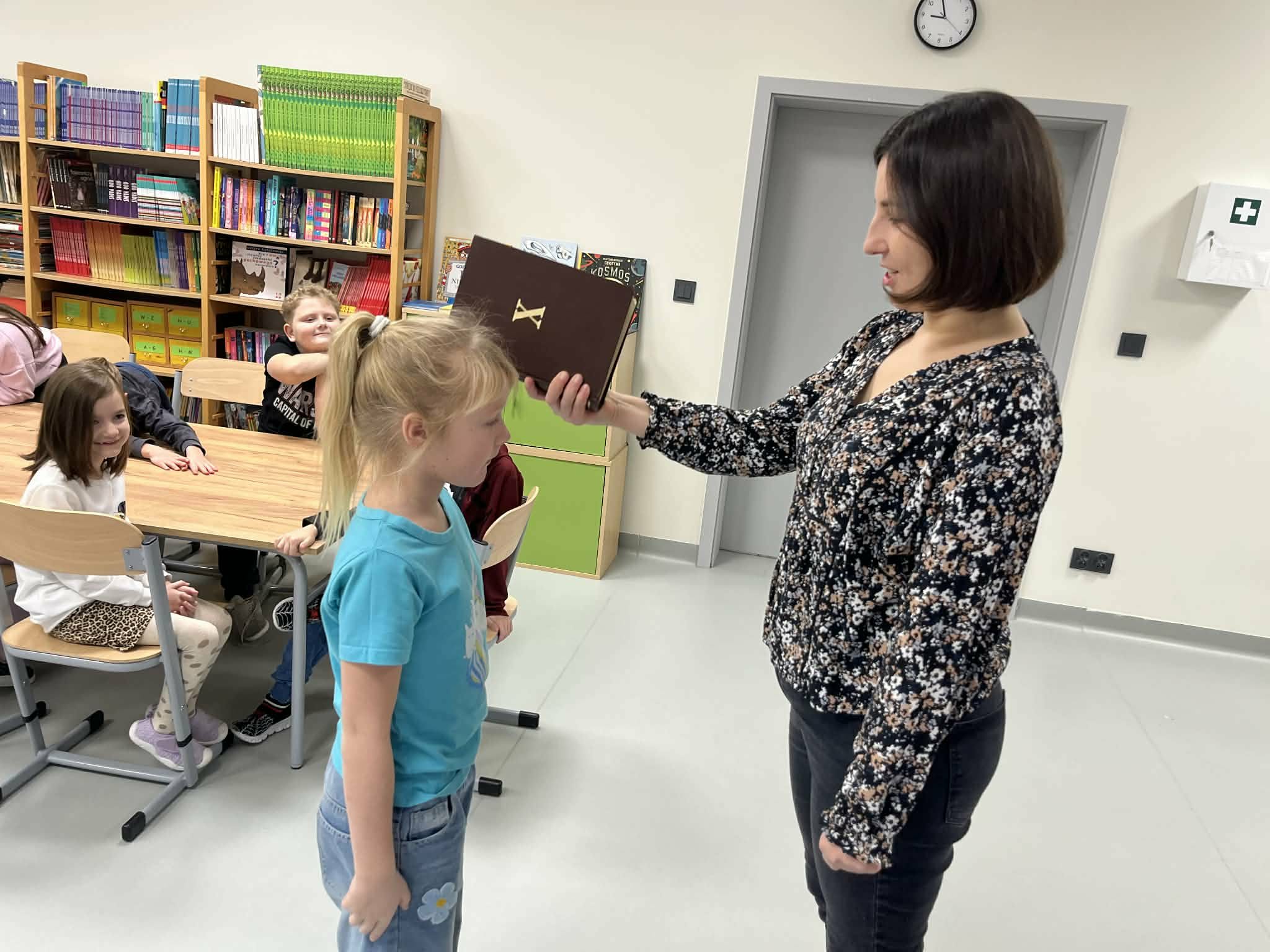 Tego dnia dzieci poznały bibliotekę szkolną i nauczyły się zasad korzystania z niej. Następnie każdy uczeń został oficjalnie pasowany na czytelnika i mógł wypożyczyć swoją pierwszą książkę.