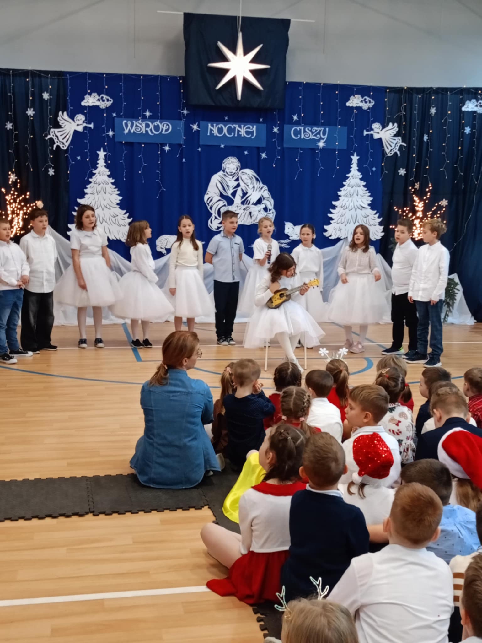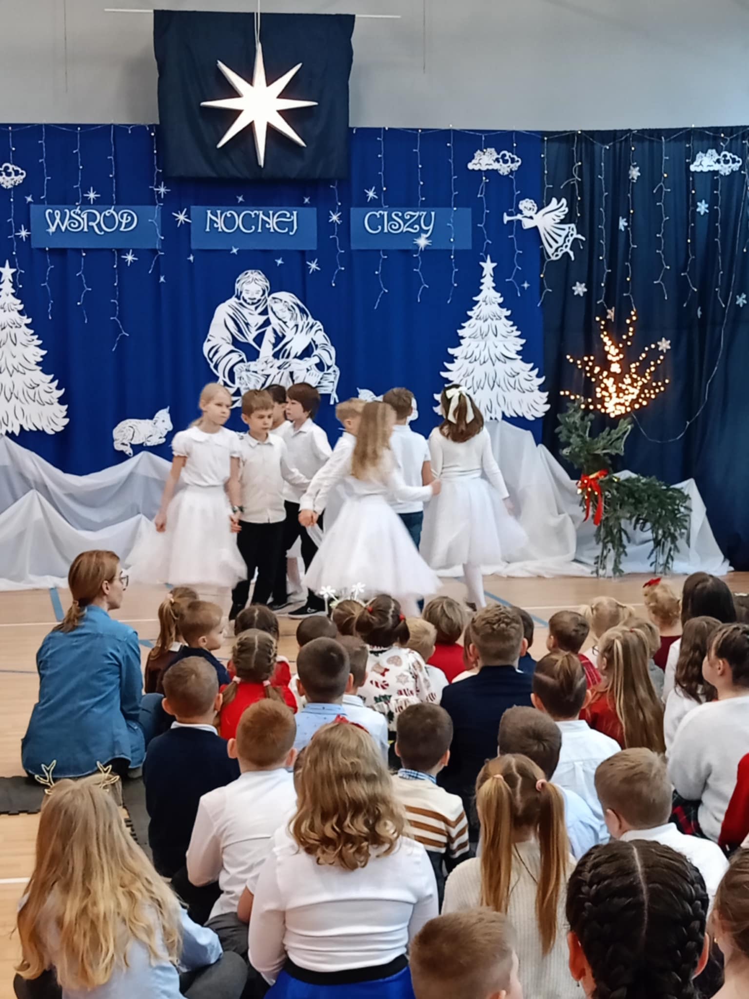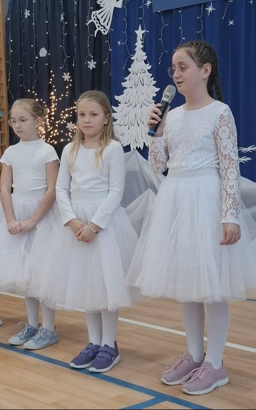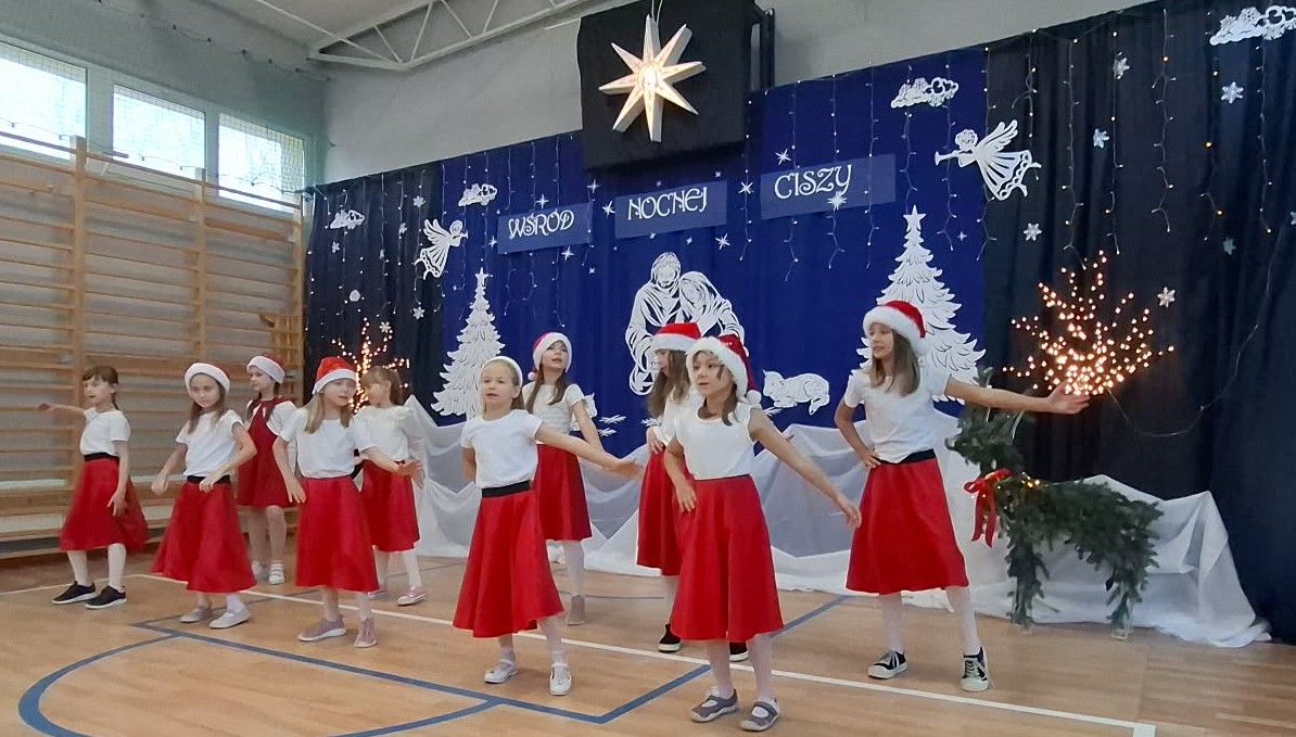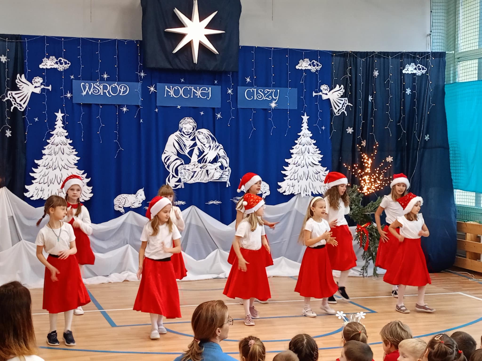 19 grudnia uczniowie klas 1-3 zaprezentowali pokaz słowno-taneczny o tematyce świątecznej. Dzieci recytowały wiersze, śpiewały pastorałki oraz kolędę przy akompaniamencie ukulele, wprowadzając zgromadzonych w magiczny, bożonarodzeniowy nastrój. Całość występu dopełniły układy taneczne do muzyki, które spotkały się z entuzjastycznym przyjęciem widowni. Młodzi artyści wykazali się ogromnym zaangażowaniem i radością ze wspólnego występu, dostarczając widzom wielu wzruszeń i pozytywnych emocji. Z okazji Świąt Bożego Narodzenia życzymy zdrowia, spokoju i rodzinnego ciepła. Niech ten wyjątkowy czas będzie pełen radości, miłości oraz wzajemnej życzliwości, a nadchodzący Nowy Rok przyniesie spełnienie marzeń, sukcesy i wiele powodów do uśmiechu. Wesołych Świąt Bożego Narodzenia! ![]()