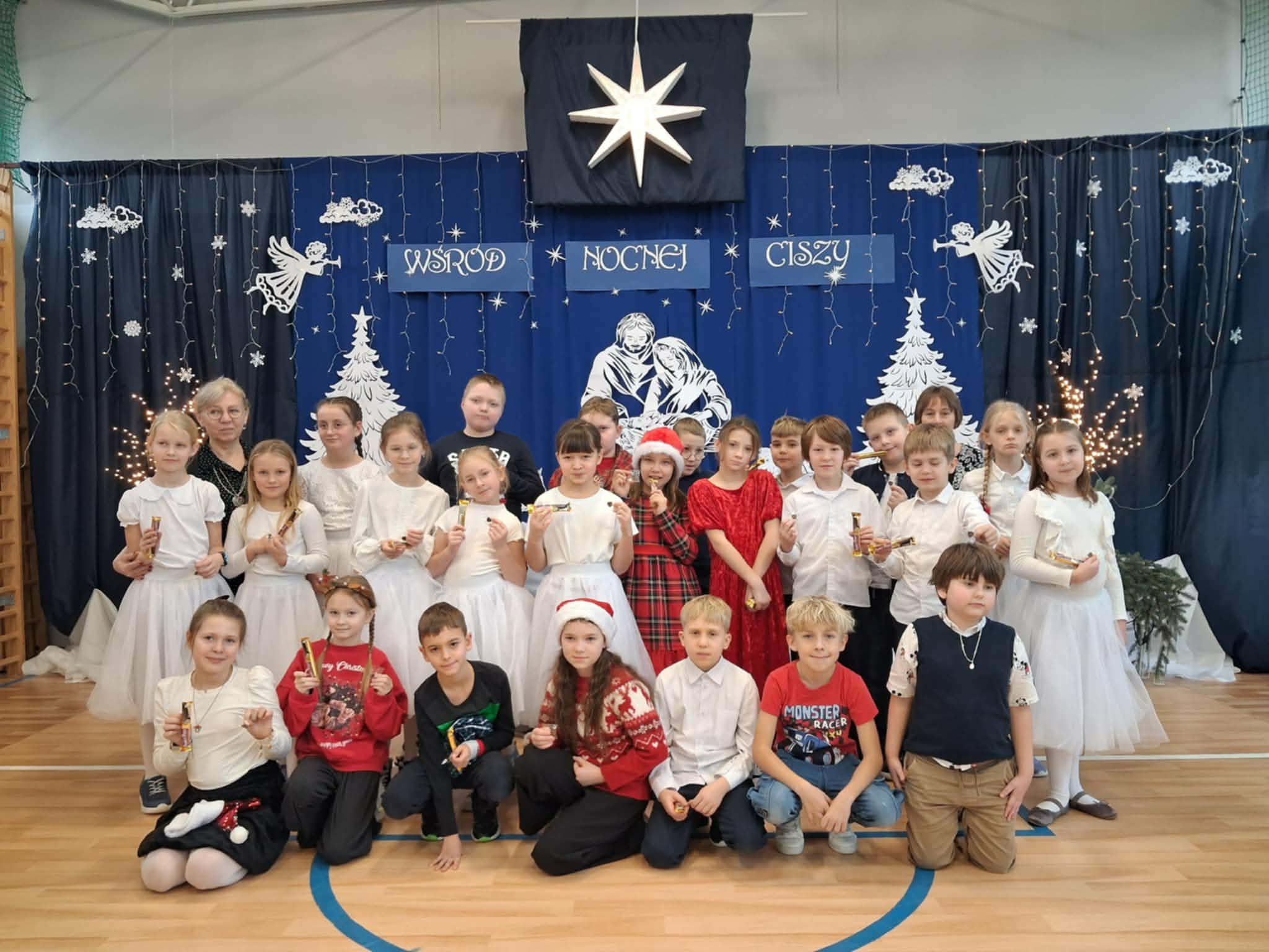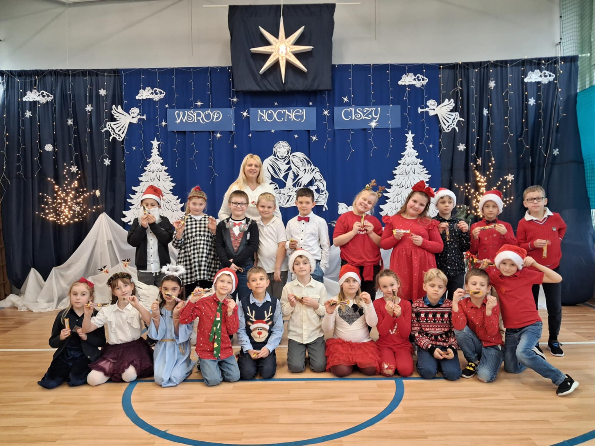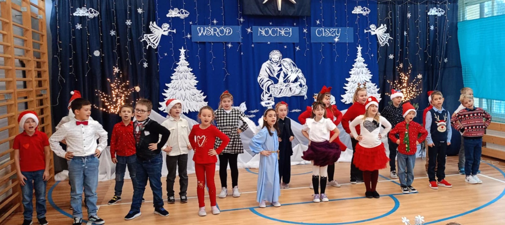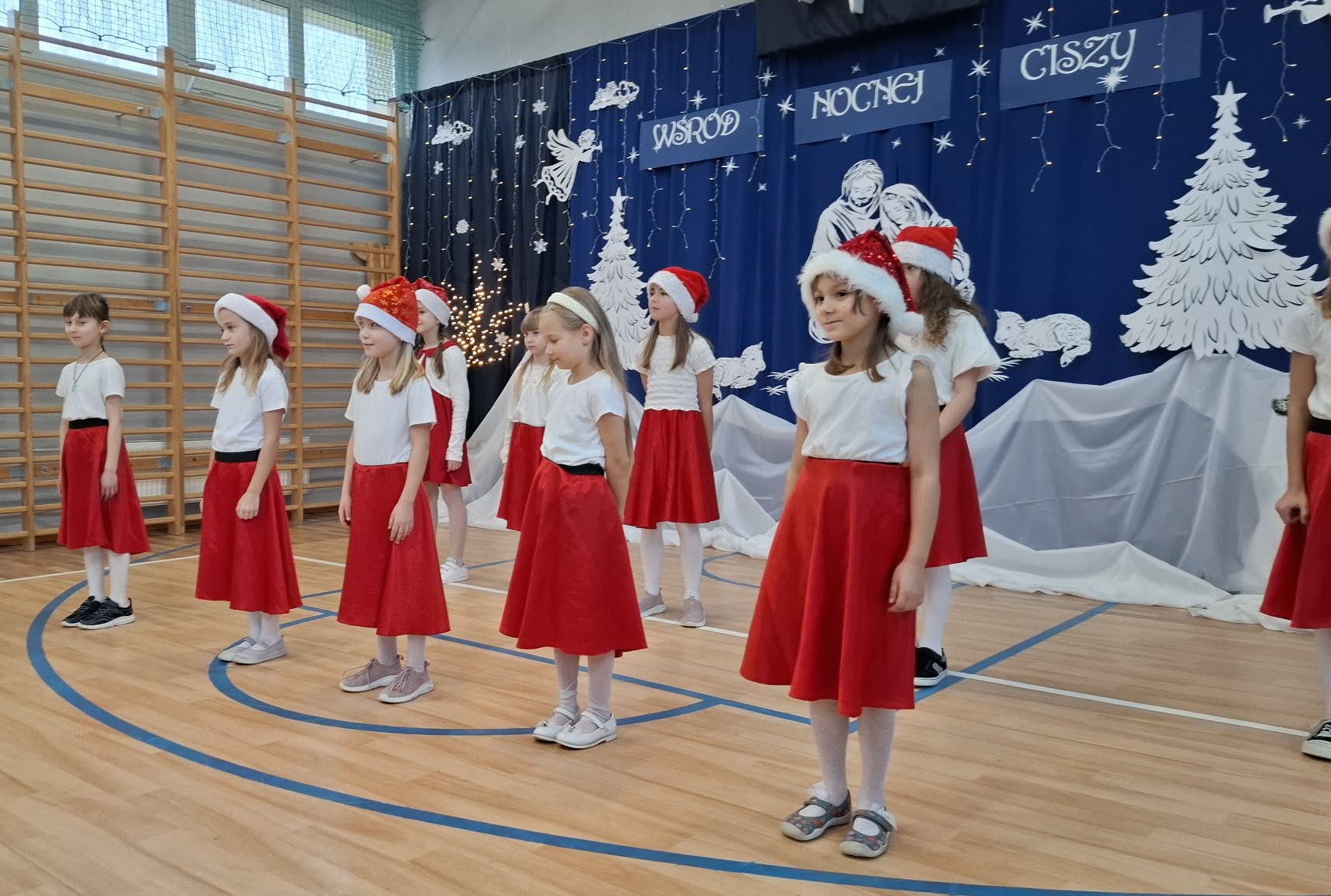19 grudnia uczniowie klas 1-3 zaprezentowali pokaz słowno-taneczny o tematyce świątecznej. Dzieci recytowały wiersze, śpiewały pastorałki oraz kolędę przy akompaniamencie ukulele, wprowadzając zgromadzonych w magiczny, bożonarodzeniowy nastrój. Całość występu dopełniły układy taneczne do muzyki, które spotkały się z entuzjastycznym przyjęciem widowni. Młodzi artyści wykazali się ogromnym zaangażowaniem i radością ze wspólnego występu, dostarczając widzom wielu wzruszeń i pozytywnych emocji. Z okazji Świąt Bożego Narodzenia życzymy zdrowia, spokoju i rodzinnego ciepła. Niech ten wyjątkowy czas będzie pełen radości, miłości oraz wzajemnej życzliwości, a nadchodzący Nowy Rok przyniesie spełnienie marzeń, sukcesy i wiele powodów do uśmiechu. Wesołych Świąt Bożego Narodzenia! ![]()