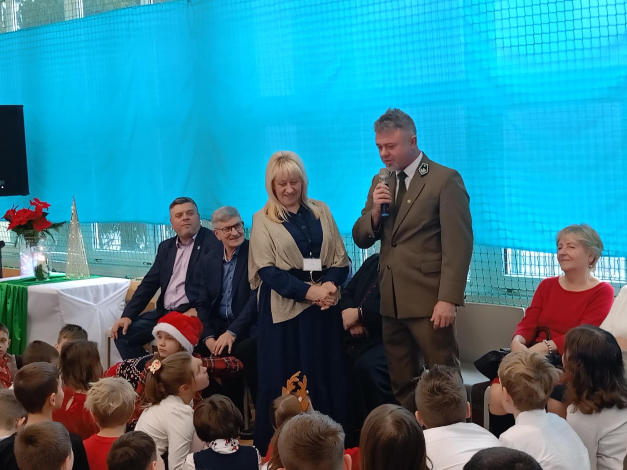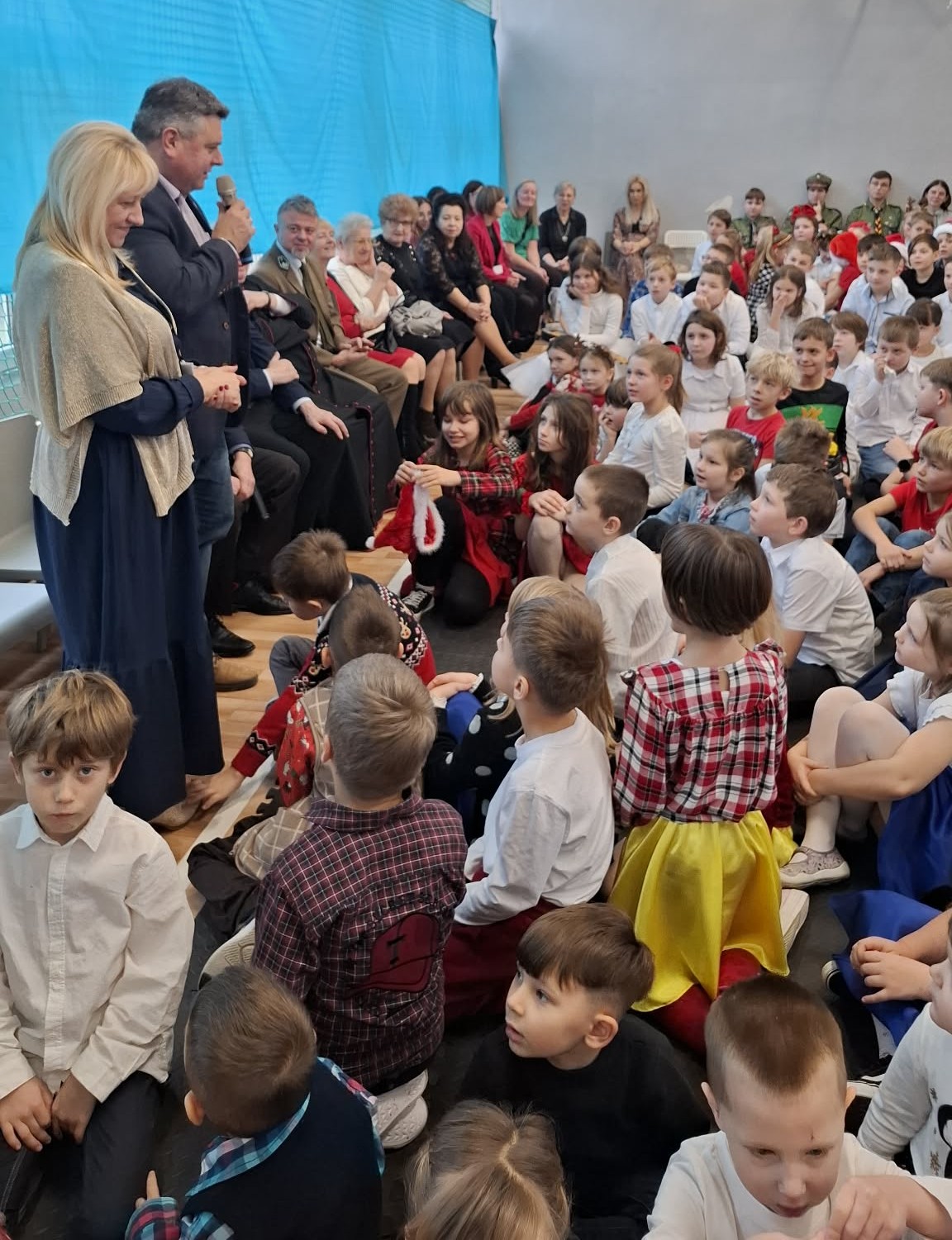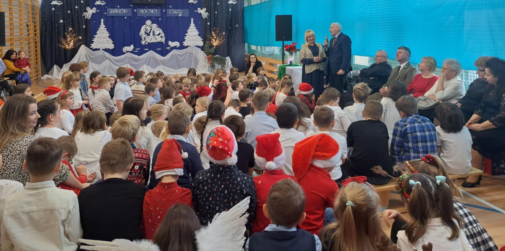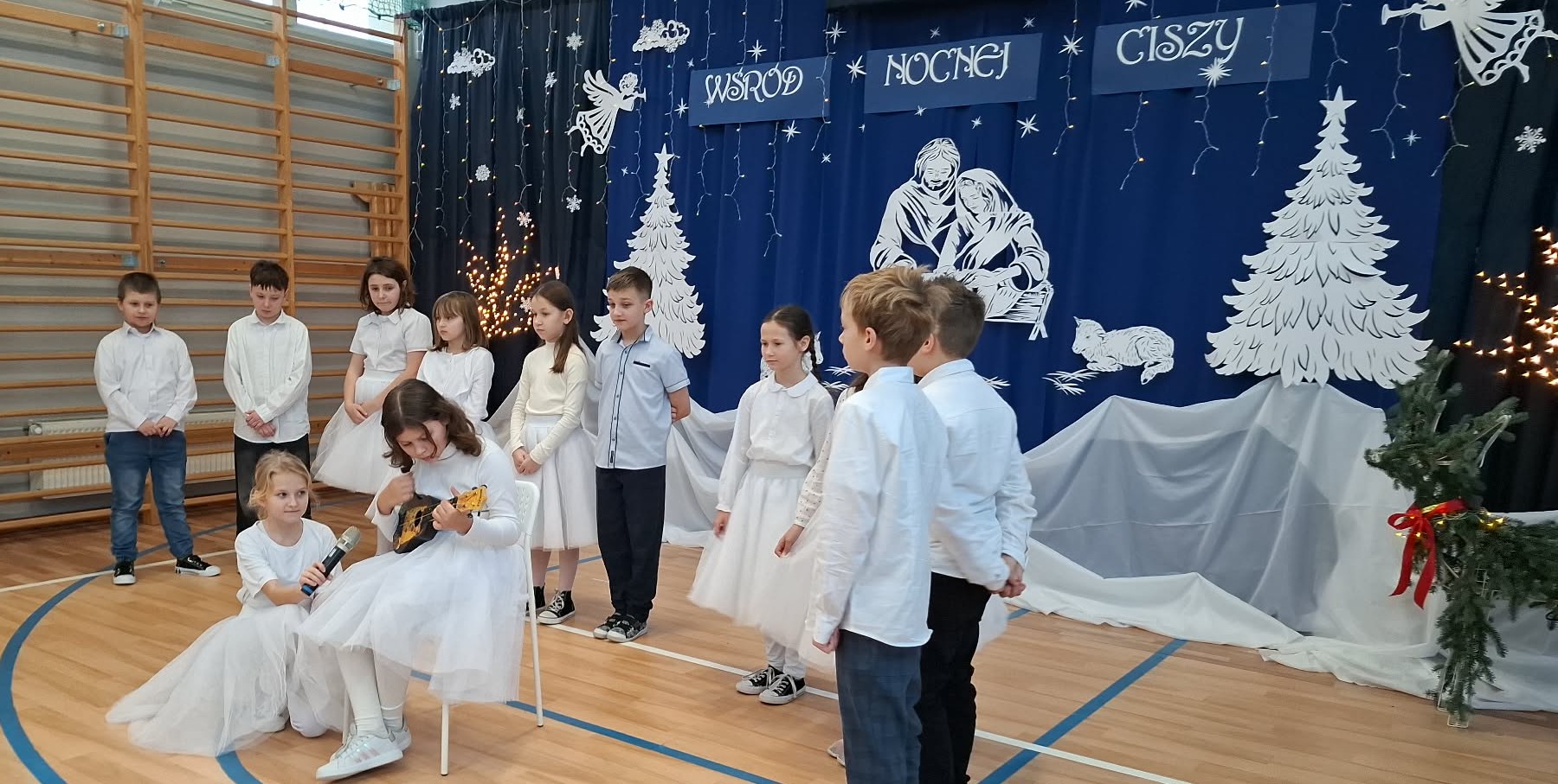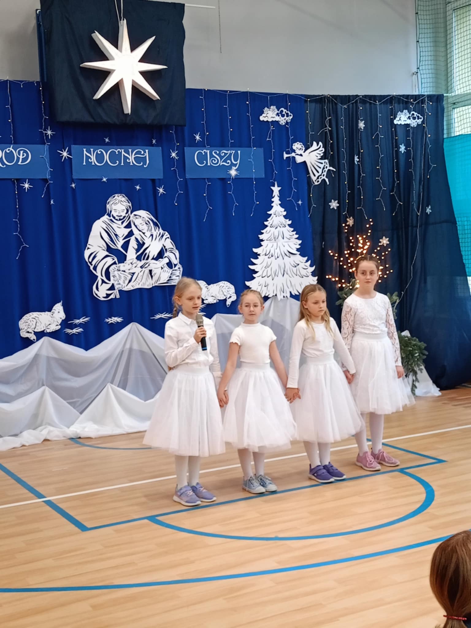 19 grudnia uczniowie klas 1-3 zaprezentowali pokaz słowno-taneczny o tematyce świątecznej. Dzieci recytowały wiersze, śpiewały pastorałki oraz kolędę przy akompaniamencie ukulele, wprowadzając zgromadzonych w magiczny, bożonarodzeniowy nastrój. Całość występu dopełniły układy taneczne do muzyki, które spotkały się z entuzjastycznym przyjęciem widowni. Młodzi artyści wykazali się ogromnym zaangażowaniem i radością ze wspólnego występu, dostarczając widzom wielu wzruszeń i pozytywnych emocji. Z okazji Świąt Bożego Narodzenia życzymy zdrowia, spokoju i rodzinnego ciepła. Niech ten wyjątkowy czas będzie pełen radości, miłości oraz wzajemnej życzliwości, a nadchodzący Nowy Rok przyniesie spełnienie marzeń, sukcesy i wiele powodów do uśmiechu. Wesołych Świąt Bożego Narodzenia! ![]()