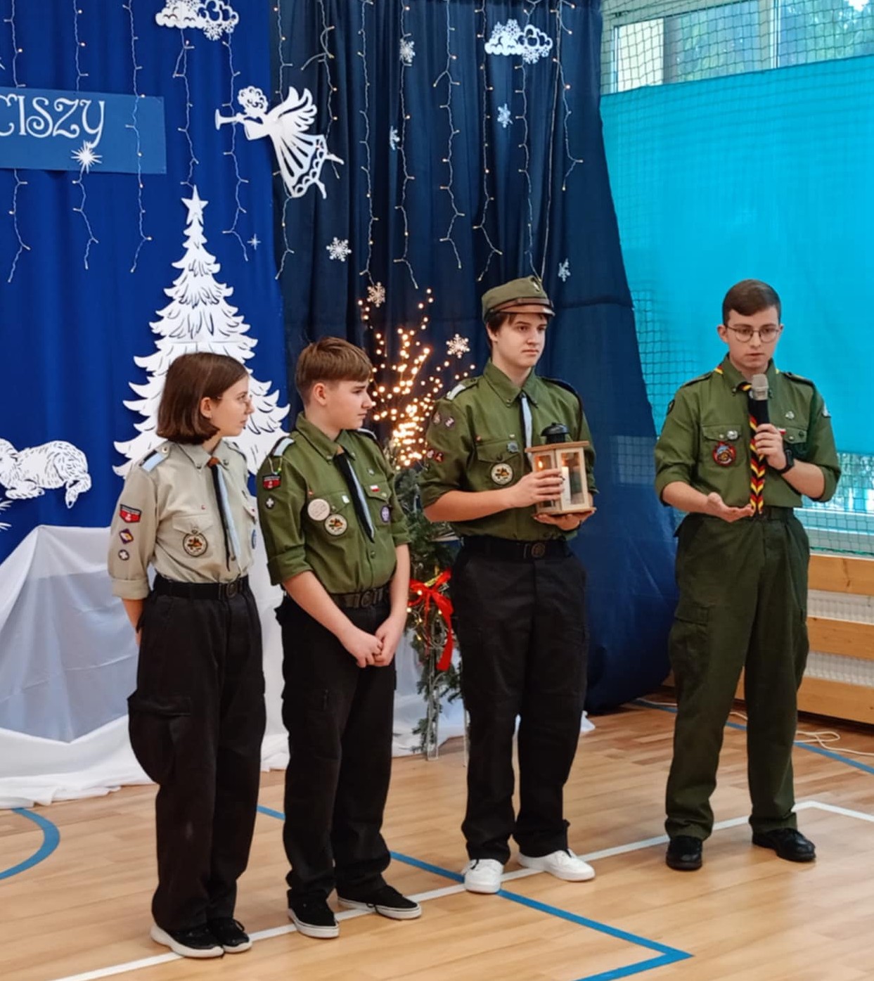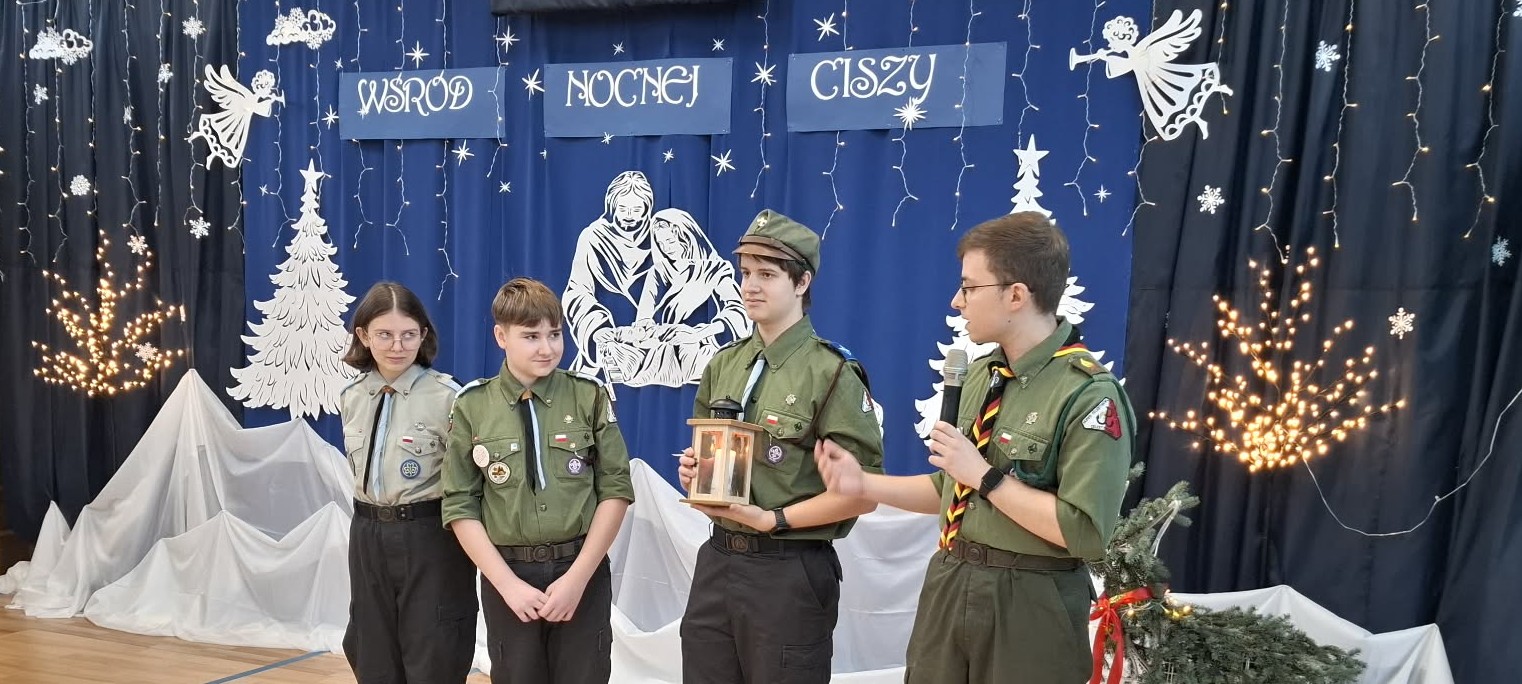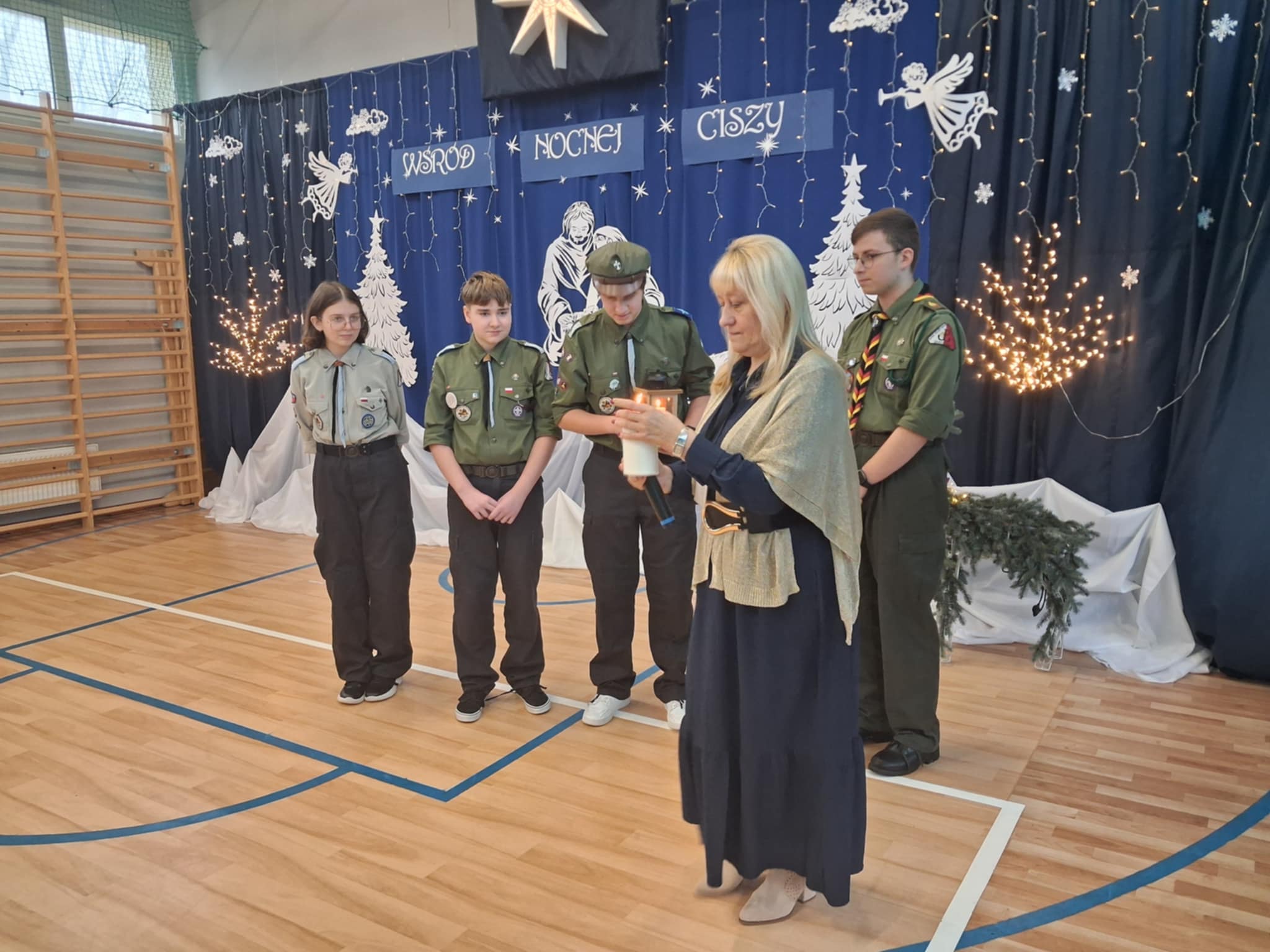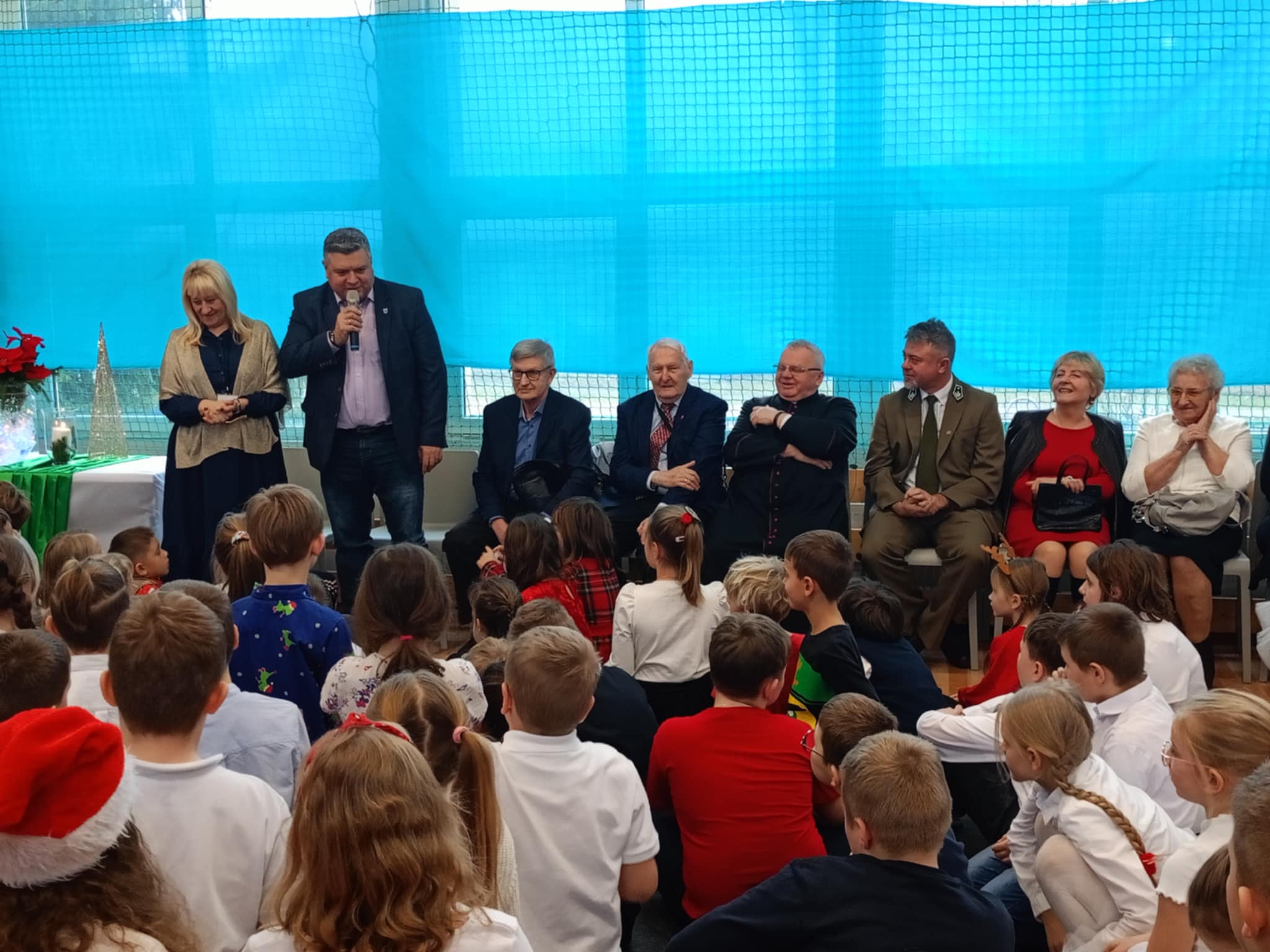 19 grudnia uczniowie klas 1-3 zaprezentowali pokaz słowno-taneczny o tematyce świątecznej. Dzieci recytowały wiersze, śpiewały pastorałki oraz kolędę przy akompaniamencie ukulele, wprowadzając zgromadzonych w magiczny, bożonarodzeniowy nastrój. Całość występu dopełniły układy taneczne do muzyki, które spotkały się z entuzjastycznym przyjęciem widowni. Młodzi artyści wykazali się ogromnym zaangażowaniem i radością ze wspólnego występu, dostarczając widzom wielu wzruszeń i pozytywnych emocji. Z okazji Świąt Bożego Narodzenia życzymy zdrowia, spokoju i rodzinnego ciepła. Niech ten wyjątkowy czas będzie pełen radości, miłości oraz wzajemnej życzliwości, a nadchodzący Nowy Rok przyniesie spełnienie marzeń, sukcesy i wiele powodów do uśmiechu. Wesołych Świąt Bożego Narodzenia! ![]()