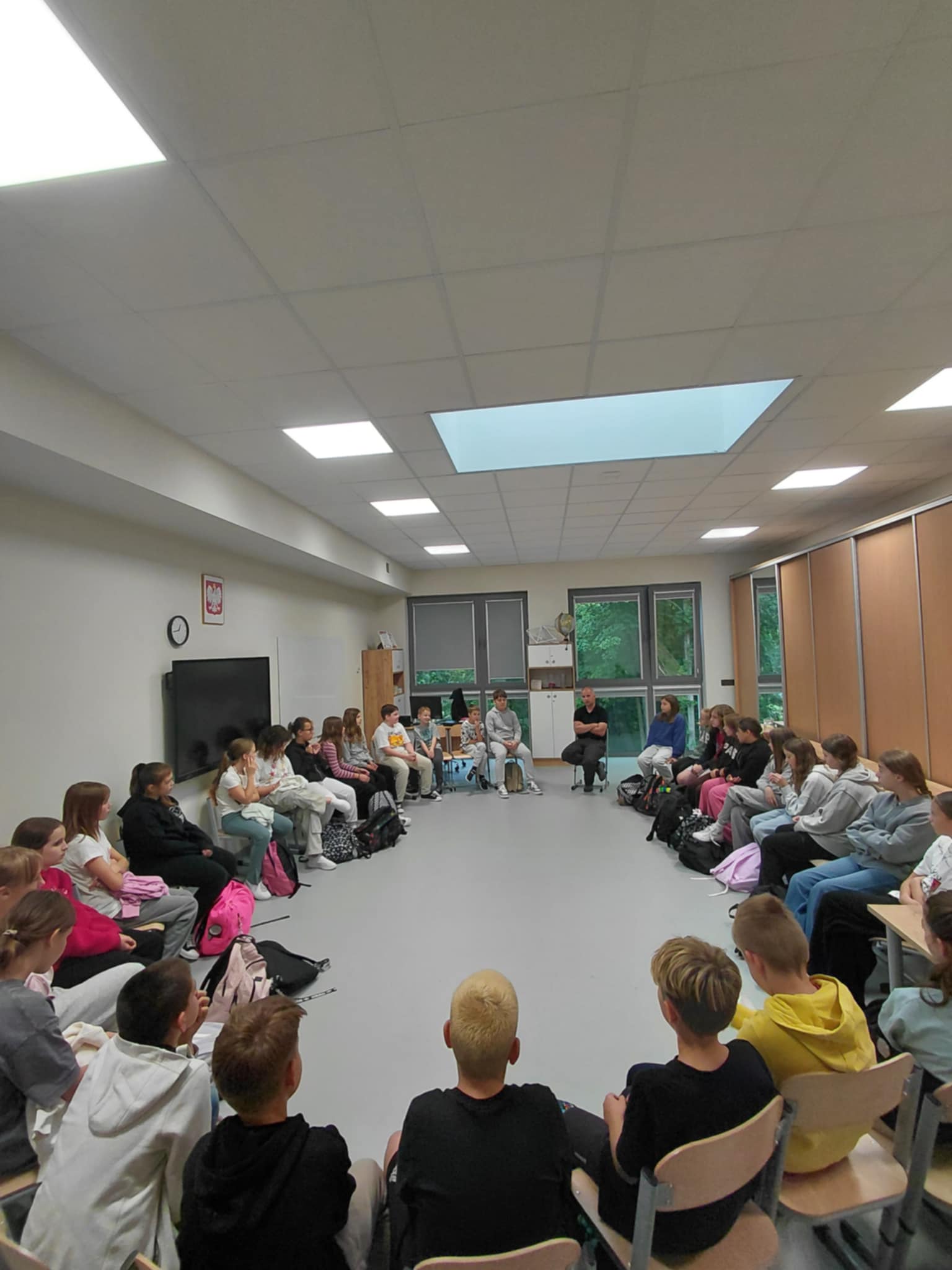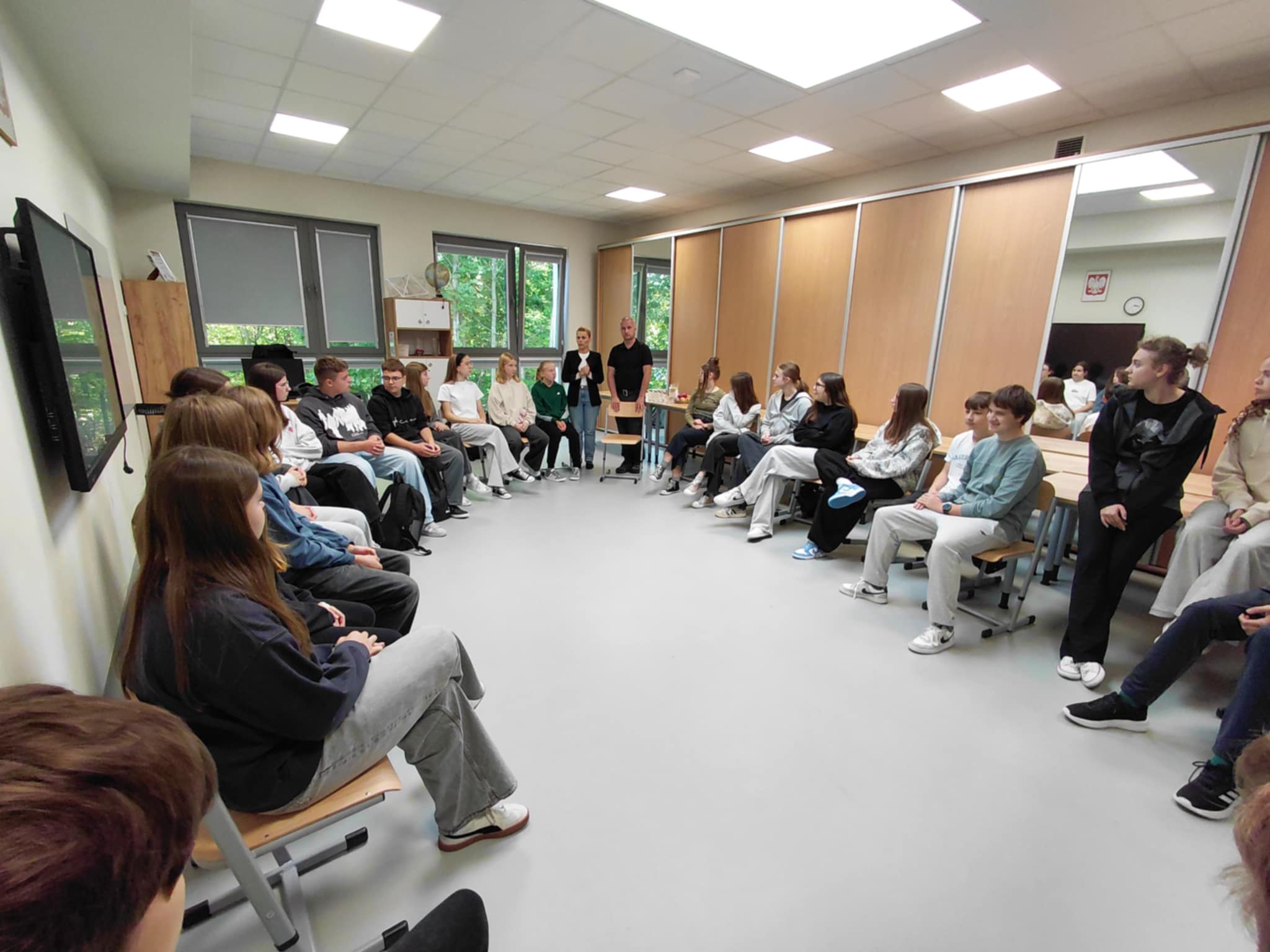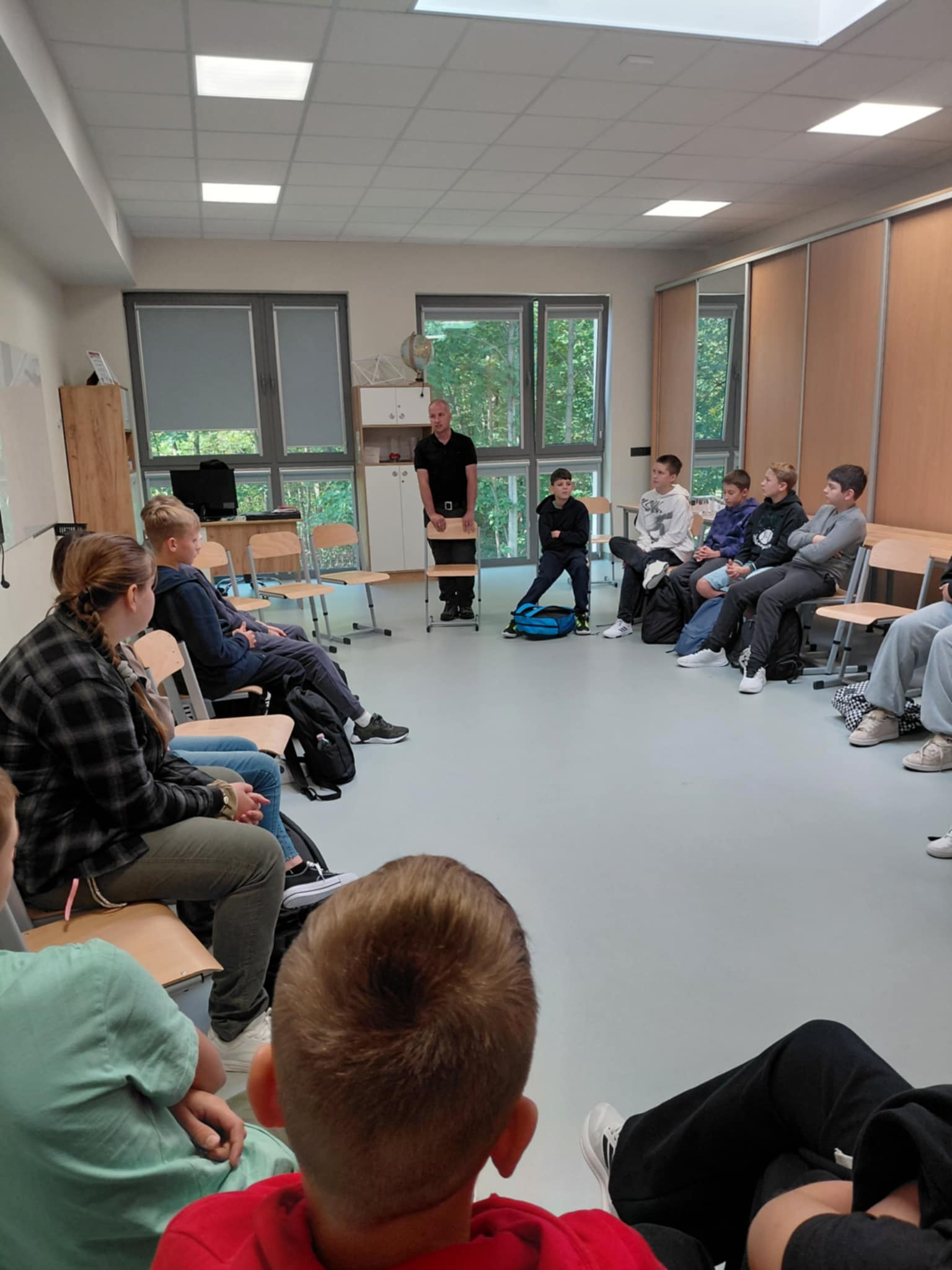 Dnia 17.09.2025r. w naszej Szkole odbyło się spotkanie edukacyjne z Panem Pawłem Boguszewskim, poświęcone przeciwdziałaniu przemocy rówieśniczej, hejtowi, uzależnieniom oraz cyberbezpieczeństwu.