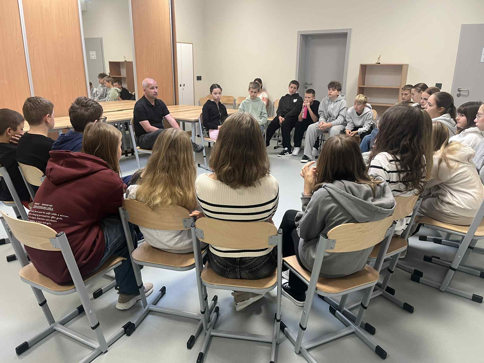 Paweł Boguszewski – detektyw, mediator, kurator sądowy oraz prezes Fundacji Całym Sercem -Nadzieja., podzielił się podczas spotkania swoją wiedzą i doświadczeniem. Uczniowie mieli okazję dowiedzieć się, jakie są konsekwencje stosowania przemocy fizycznej, psychicznej czy internetowej, a także jakie skutki prawne i społeczne mogą dotknąć osoby dopuszczające się takich zachowań. Ekspert  podkreślał znaczenie odpowiedzialności, szacunku i empatii w budowaniu bezpiecznych relacji.