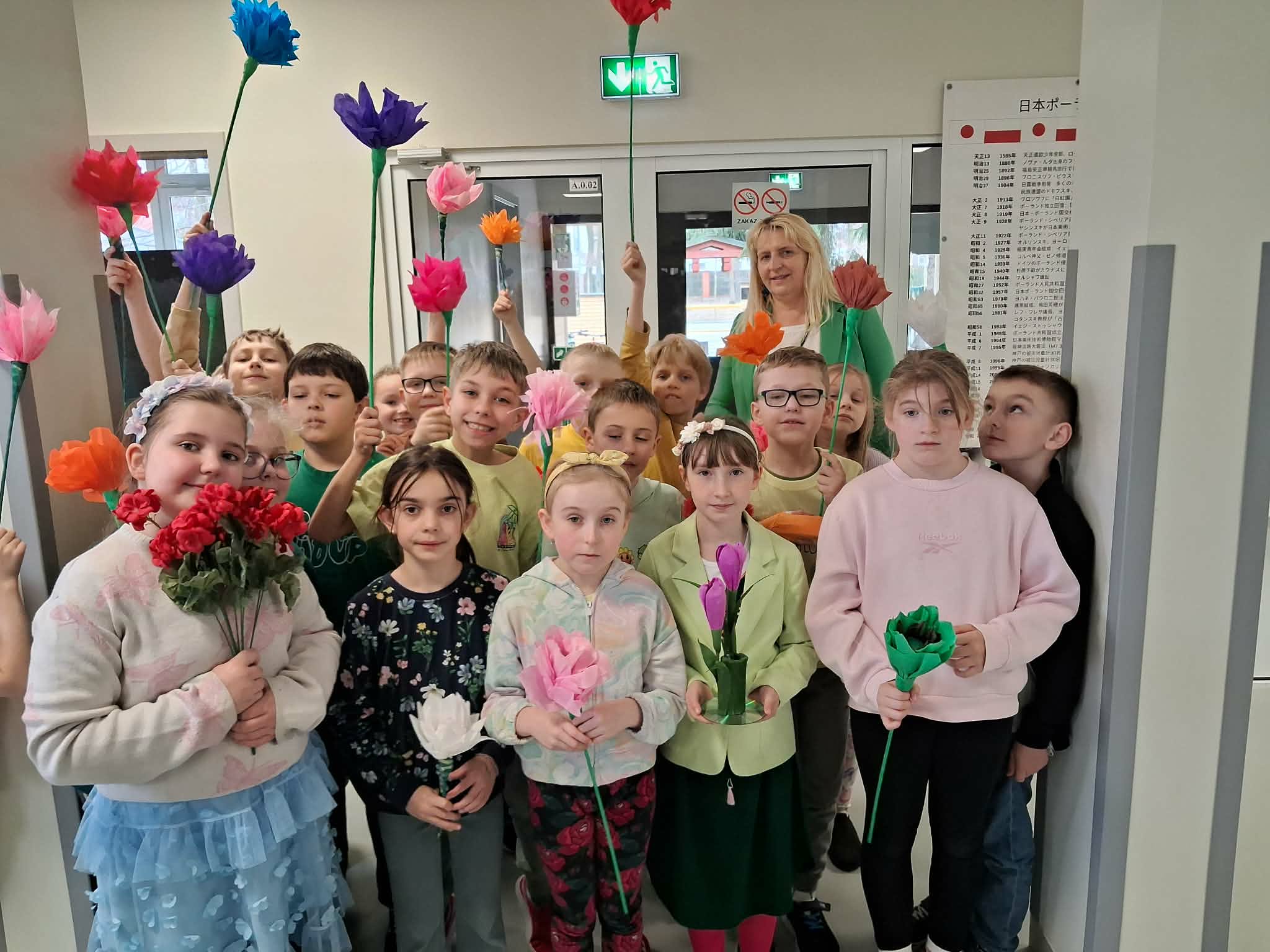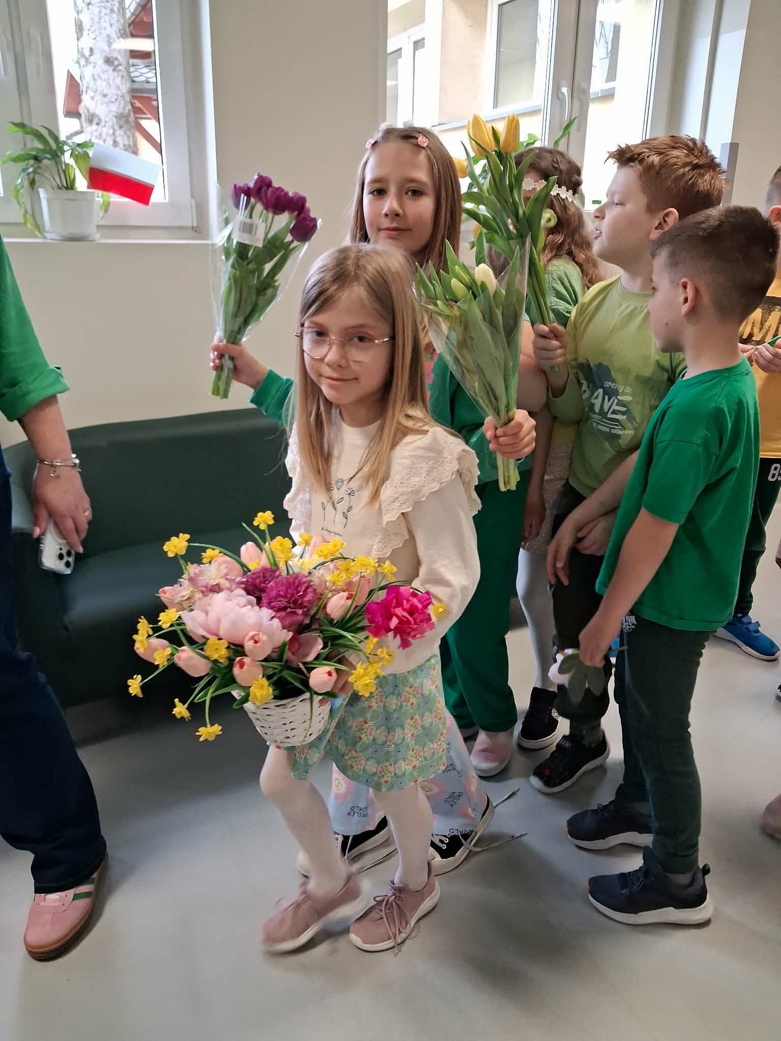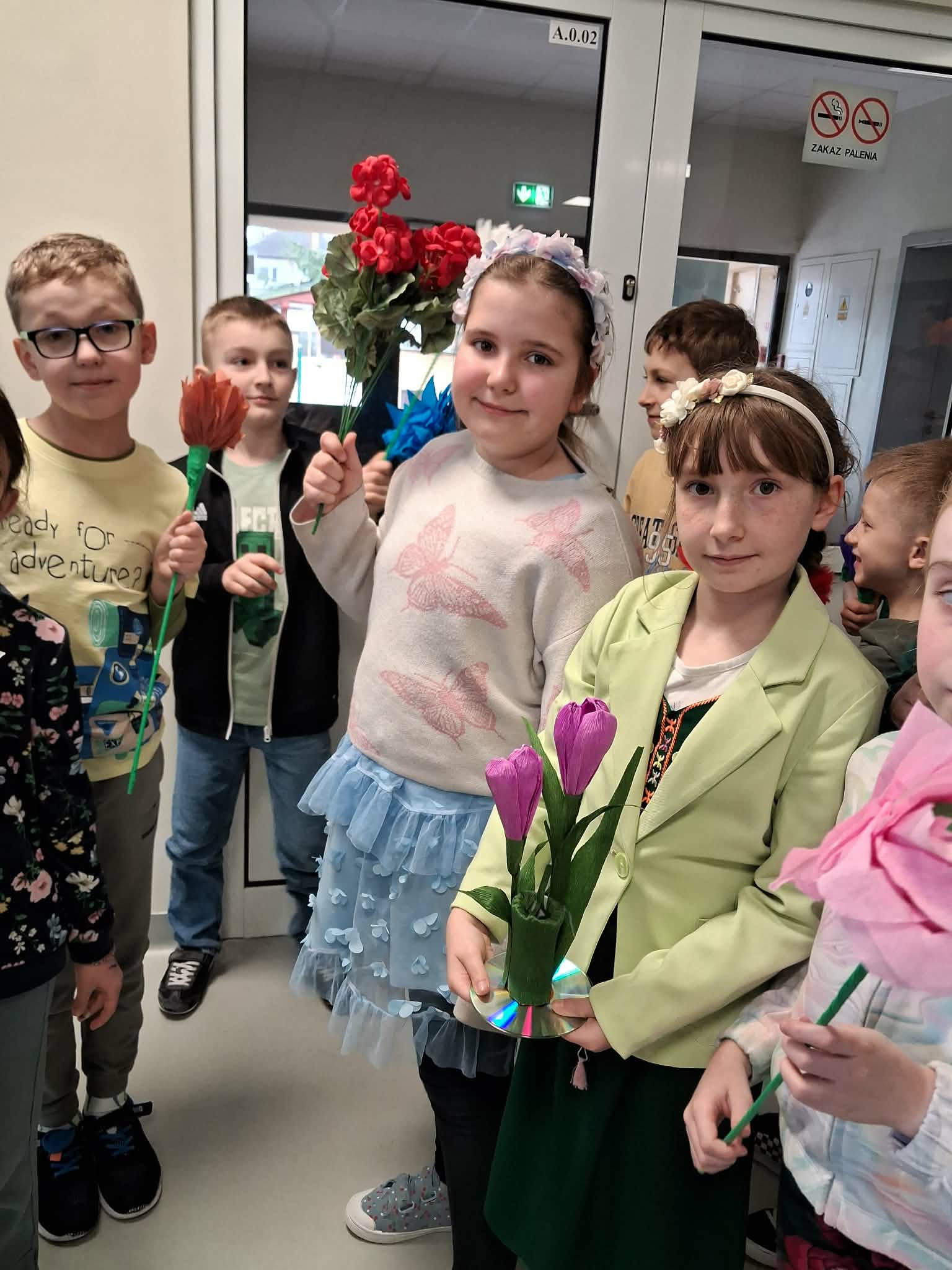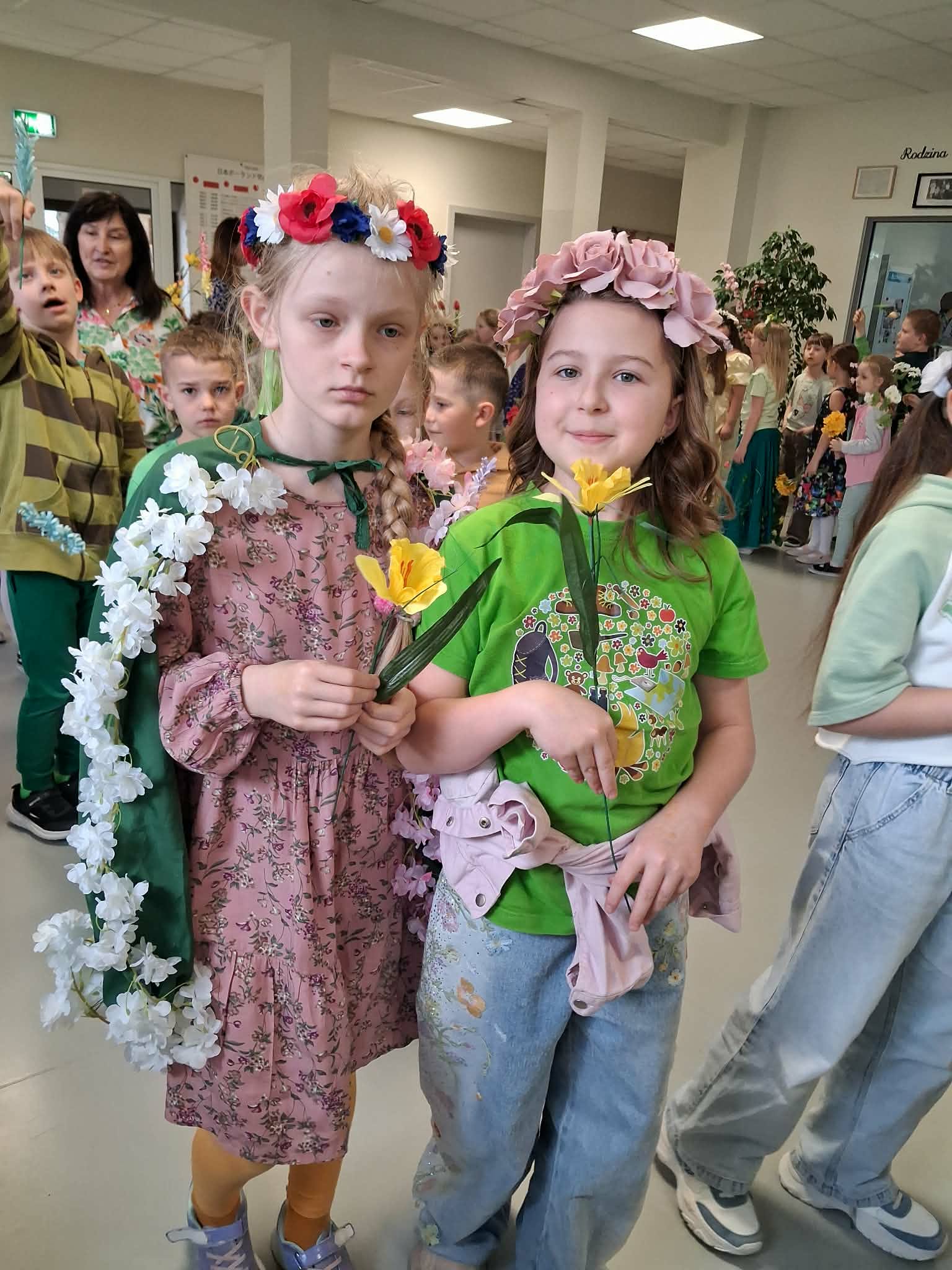 Pierwszy dzień wiosny w naszej Szkole upłynął w wyjątkowo radosnej i kolorowej atmosferze. Uczniowie klas 1–8 wraz z nauczycielami aktywnie włączyli się w świętowanie, ubierając się w barwy kojarzące się z budzącą się do życia przyrodą – dominowały odcienie żółci i zieleni. Korytarze oraz sale lekcyjne wypełniły się wiosennym klimatem, a uczniowie stworzyli niezwykłą „żywą łąkę”. Stroje zostały wzbogacone o elementy kwiatowe – pojawiły się opaski, wianki, kapelusze oraz dekoracje we włosach i na ubraniach. Pomysłowość i zaangażowanie uczniów wprowadziły wszystkich w radosny, serdeczny i pełen życzliwości nastój, który chcielibyśmy, aby pozostał z nami na długo.