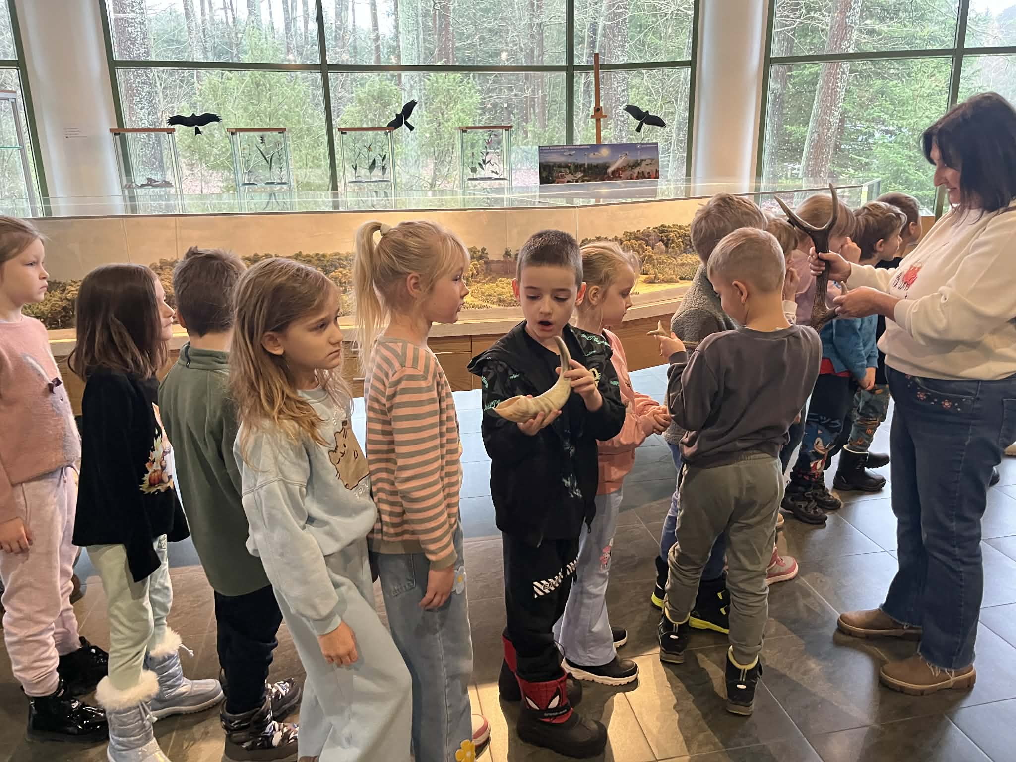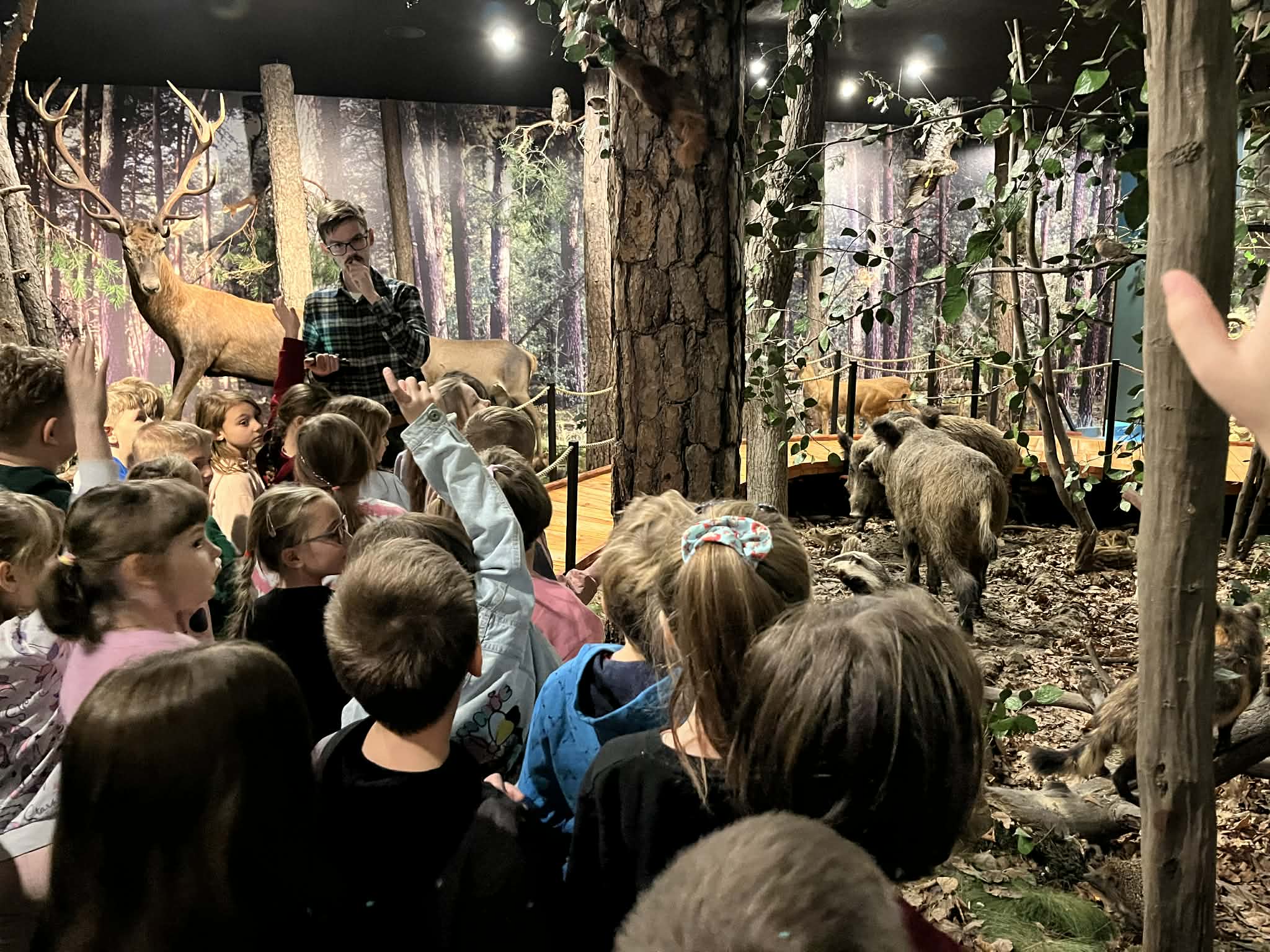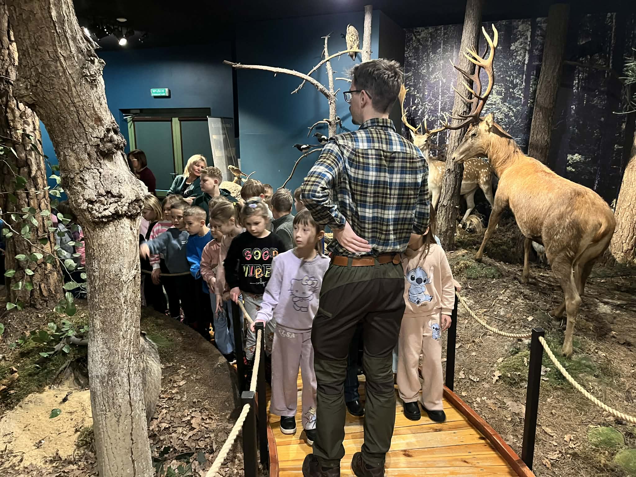 W dniu 27 listopada klasy 1a i 1b uczestniczyły w wycieczce do Centrum Edukacji Leśnej w Celestynowie. Podczas zwiedzania sal wystawowych Uczniowie mogli nie tylko dotknąć, zobaczyć, ale również usłyszeć dźwięki zwierząt i ptaków zamieszkujących las. Wystawa i informacje usłyszane od przewodnika wielokrotnie wzbudzały ciekawość, zainteresowanie, oraz lawinowe zadawanie pytań.