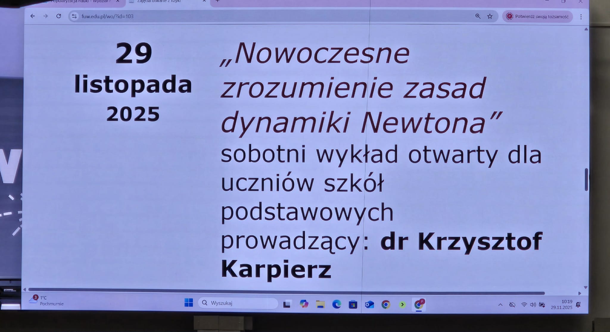 Ostatni w tym semestrze wykład z FIZYKI to próba przybliżenia uczestnikom zasad dynamiki Newtona. Grupa naszych ósmoklasistów poświęciła sobotnie przedpołudnie na poszerzenie wiedzy w tym zakresie, dla niektórych z nich było to już trzecie spotkanie z wykładowcami Wydziału Fizyki Uniwersytetu Warszawskiego. Kolejne dopiero w marcu.